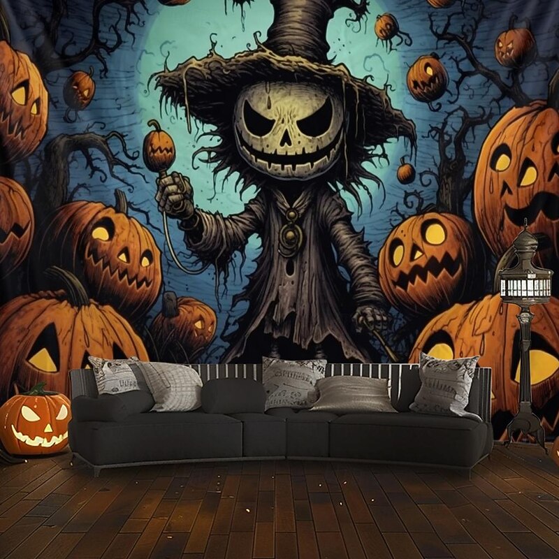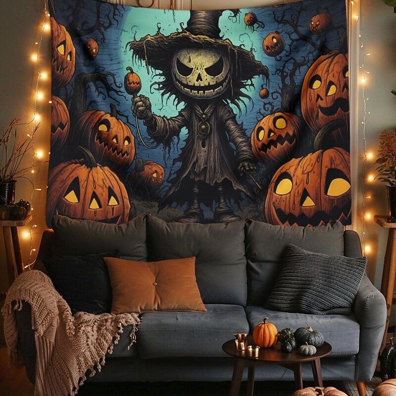 Halloween Decorations Hanging Tapestry Scarecrow Pumpkin Wall Art Large Tapestry Mural Decor Photograph Backdrop Blanket Curtain Home Bedroom Living Room 21