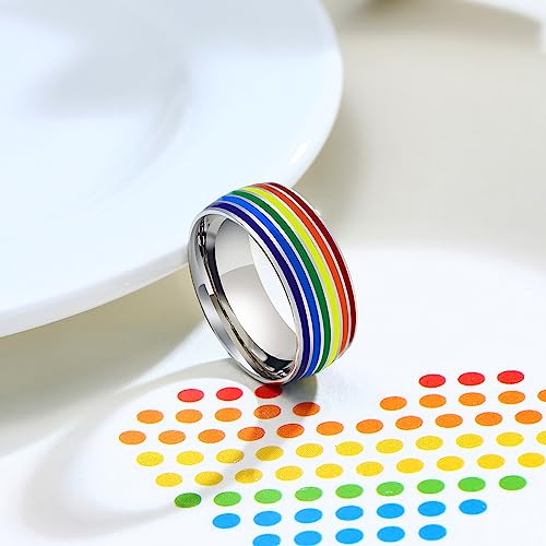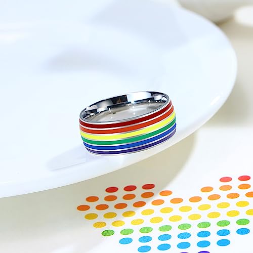 Pride Ring Titanium Steel LGBT Rainbow Rings for Gay Lesbian Asexual Bisexual Trans Nonbinary LGBTQ Pride Month Friendship Wedding Promise Band Rings Jewelry Gift for Couples Men Women 6