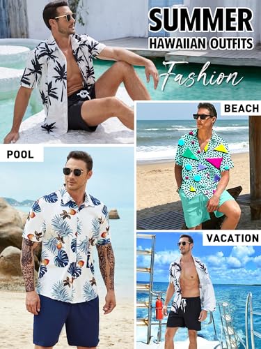 • STYLE: Mens summer outfits is designed with a hawaiian tropical floral print shirt and solid color shorts. The combination of rich colors and fashionable printed will not let,perfect for mens vacation outfits.