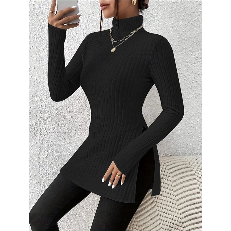 HOT ! Women's Blouse Solid Color Stylish Casual Long Sleeve Turtleneck Long Tops Daily Black White Spring Fall Winter