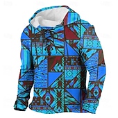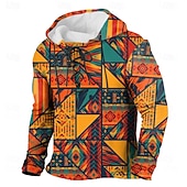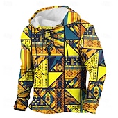 More information about Men's Patchwork Tribal Hoodie Sweatshirt Ethnic Vintage Retro Hooded Outdoor Home Yellow Blue Drawstring Fall Winter Designer