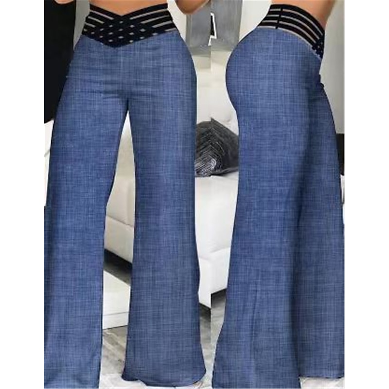 More information about Women's Wide Leg Pants Trousers Fashion Streetwear Work Full Length High Waist Solid Color High Cut Comfort Breathability Soft Micro-elastic Party Daily Wear Robin's Egg Blue Black White Yellow Fall