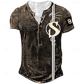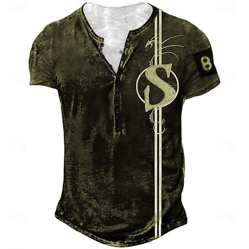 More information about Men's Dragon Letter 'S' T Shirt Henley Shirt Short Sleeve Sports Fashion Designer Outdoor Street Daily Summer Deep Green Dark Brown Black Gray Henley Henley T-Shirt