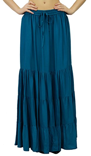 HOT ! Bimba Boho Long Flaired Maxi Tier Skirt Elastic Waist Rayon Bohemian Skirts