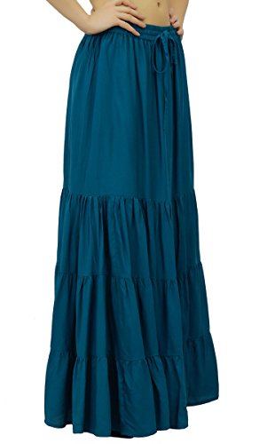 Bimba Boho Long Flaired Maxi Tier Skirt Elastic Waist Rayon Bohemian Skirts 4