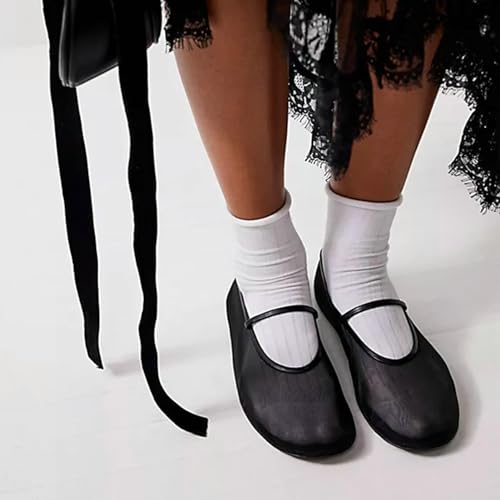 • Upper Material: Mesh and Rubber Sole.Heel Height: 1cm, 0.39" mesh mary jane flats for women. high-quality mesh with a soft and delicate touch.