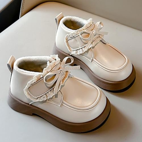 Little Girls Winter Cute Bowknot Short Dress Boot Low Heel Anti Slip Comfortable Fashion Girls Leather Shoes 6