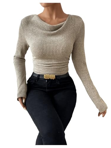 More information about SweatyRocks Women's Cowl Neck Long Sleeve T Shirts Draped Slim Fit Ribbed Knit Basic Tops