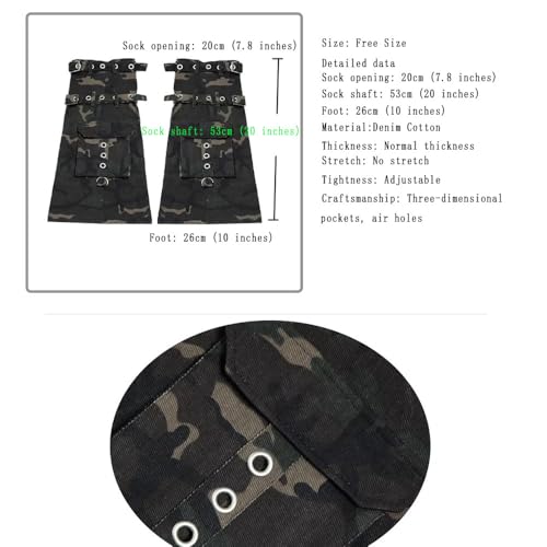 More information about Green Camouflage Print Waterproof Denim Leg Warmers Punk Girl strappy Socks for Women