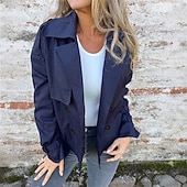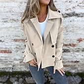 More information about Women's Casual Jacket Trench Coat Warm Comfortable Pocket Buttons Fashion Outdoor Plain Going out Weekend Double Breasted Regular Lapel Regular Fit Long Sleeve Outerwear Khaki Dark Blue Fall Winter
