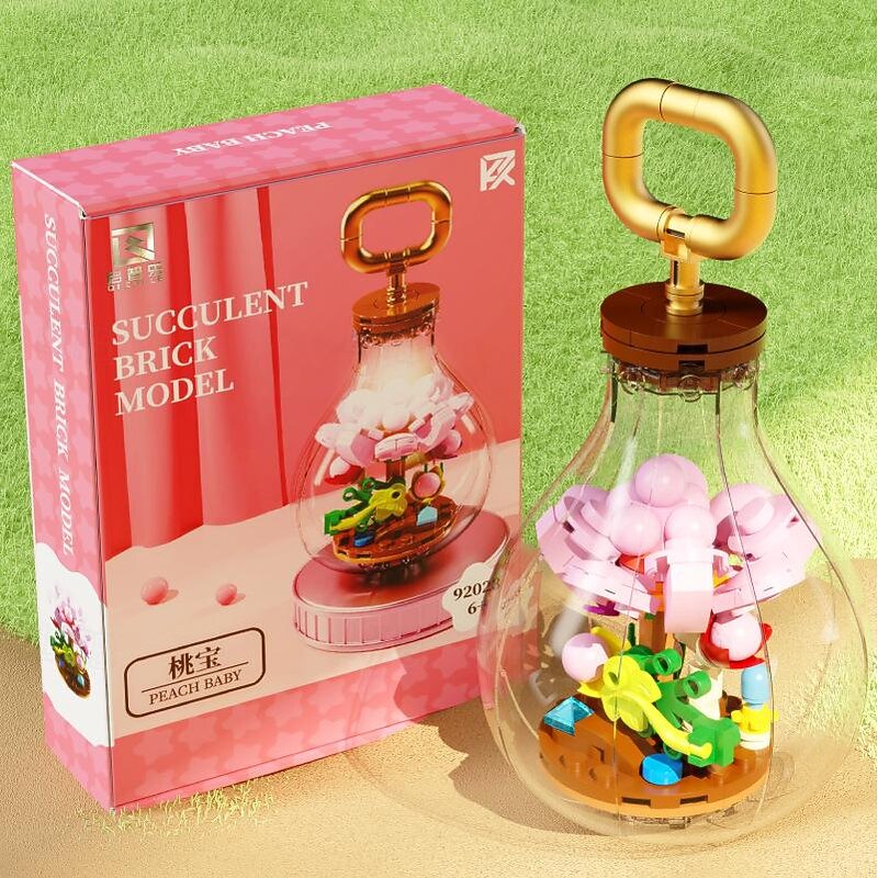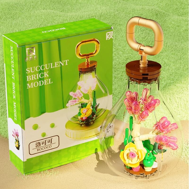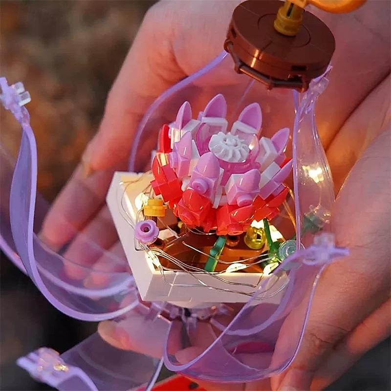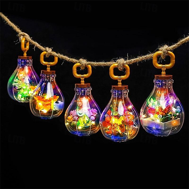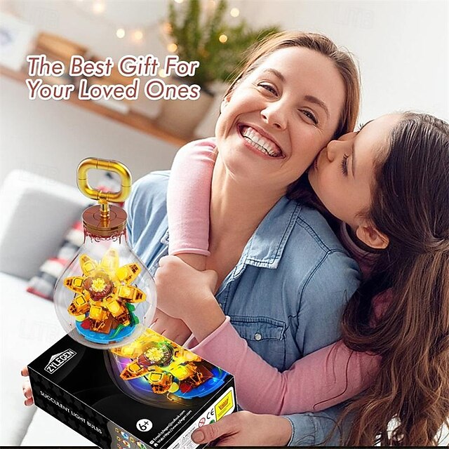 HOT ! Women's Day Gifts Succulents in Bulbs Building Block Set with 2 LED String Lights DIY 3 Adjustable Flash Speeds Women's Day Mother's Day Gifts for Girls Mother's Day Gifts for MoM
