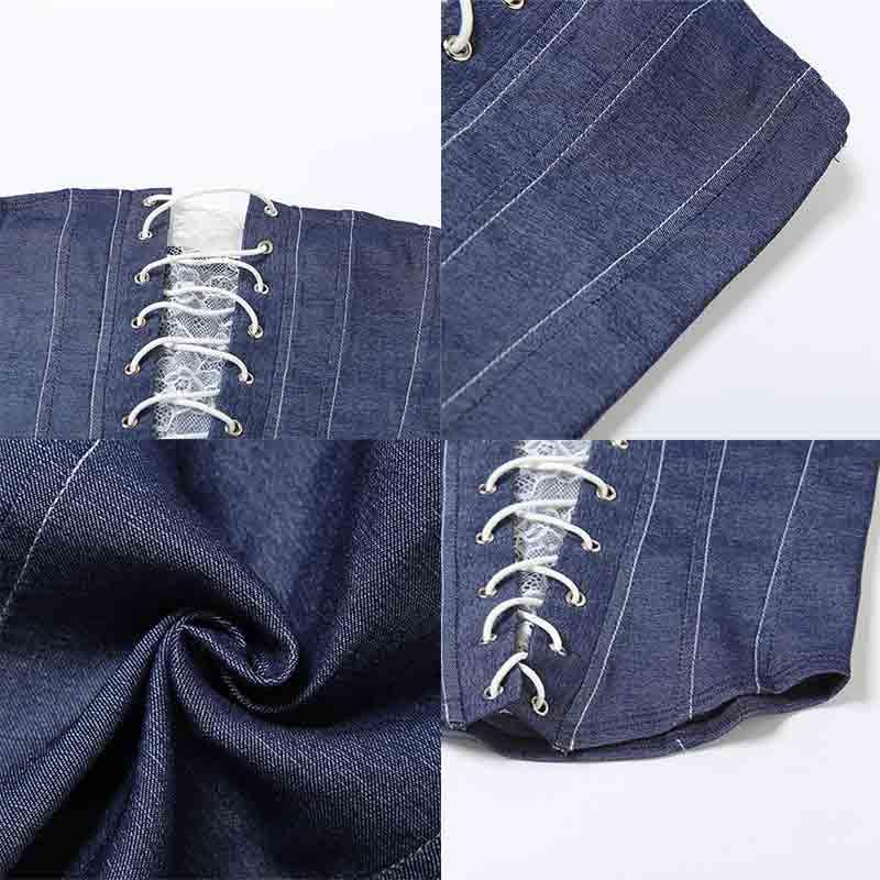 More information about Women's Denim Patchwork lace Cross tie Slim fit Vest Strapless Short Sleeveless Tops for Women
