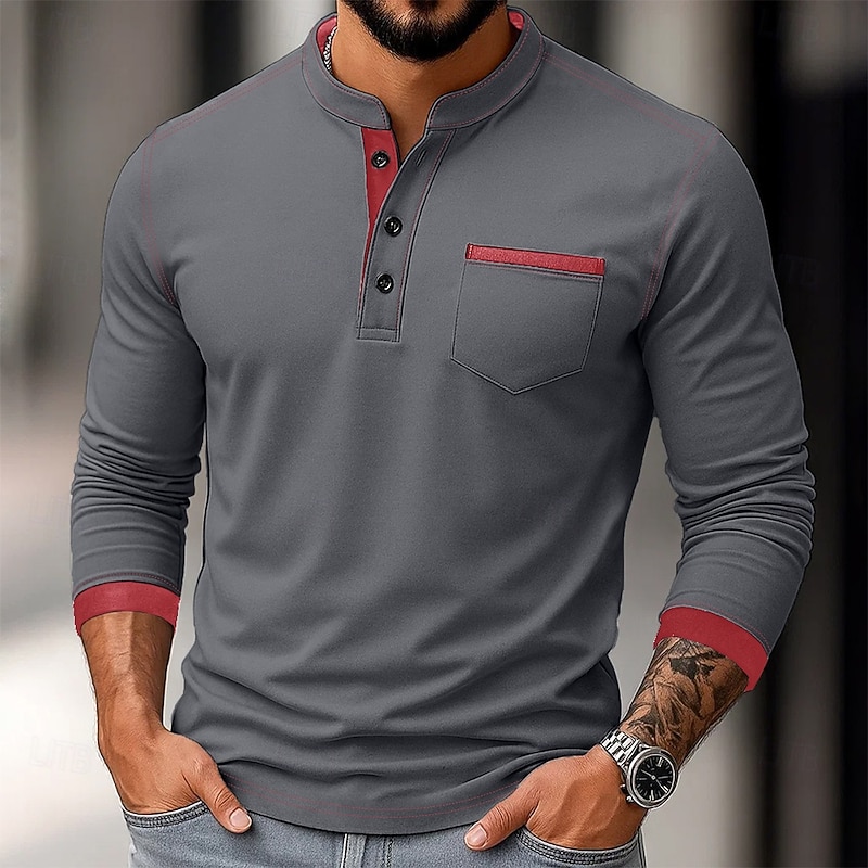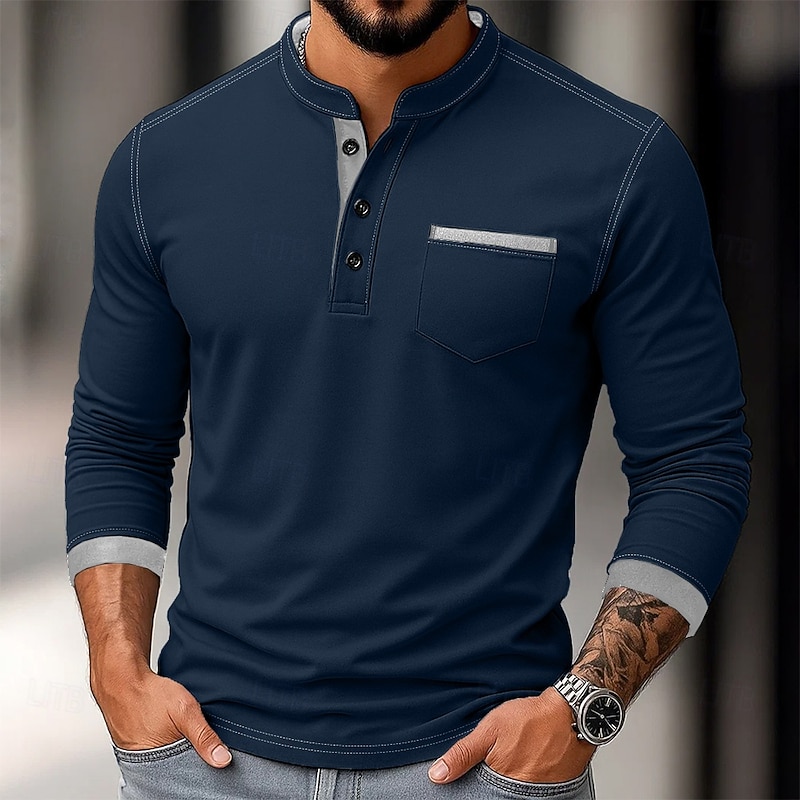 More information about Men's Henley Shirt Tee Henley Top Long Sleeve Solid Color Plain Solid Fashion Designer Casual Color Block Buttons Henley Outdoor Casual Daily Summer Spring Fall Black White Navy Blue Henley T-Shirt