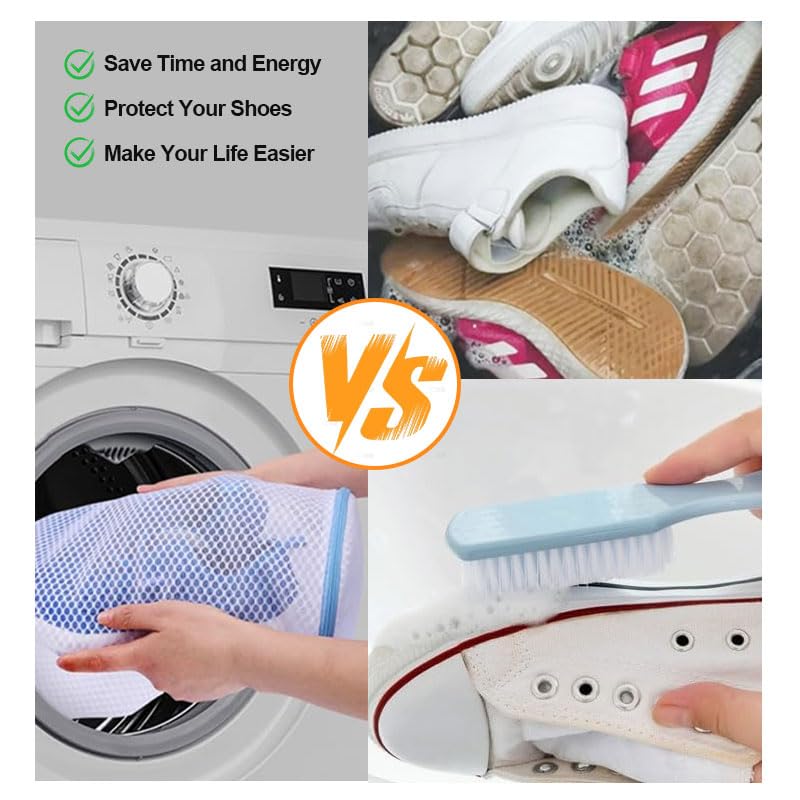 HOT ! Shoes Wash Bags, Laundry Shoe Mesh Bag with Zipper for Washing and Drying Machine, Reusable and Durable Reinforced Shoe Cleaning Bag, Shoe Cleaning Laundry Bag for Gym Shoes, Sneaker, Slipper-White