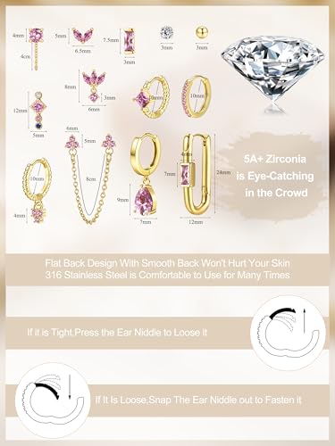 • Versatile for Multiple Piercings: Ideal for cartilage earrings for women, conch earrings for women, tragus, nap earrings,and helix piercings, these hypoallergenic earrings offer a secure and stylish option for any piercing. Perfect for both daily wear and special occasions.