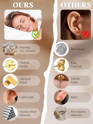 HOT ! Sanfenly Stud Earrings Small Gold Hoop Earrings Set for Women Flat Back Earring Hypoallergenic Cartilage Earring Lightweight Dainty 14K Gold Stud Earrings for Multiple Piercing Set