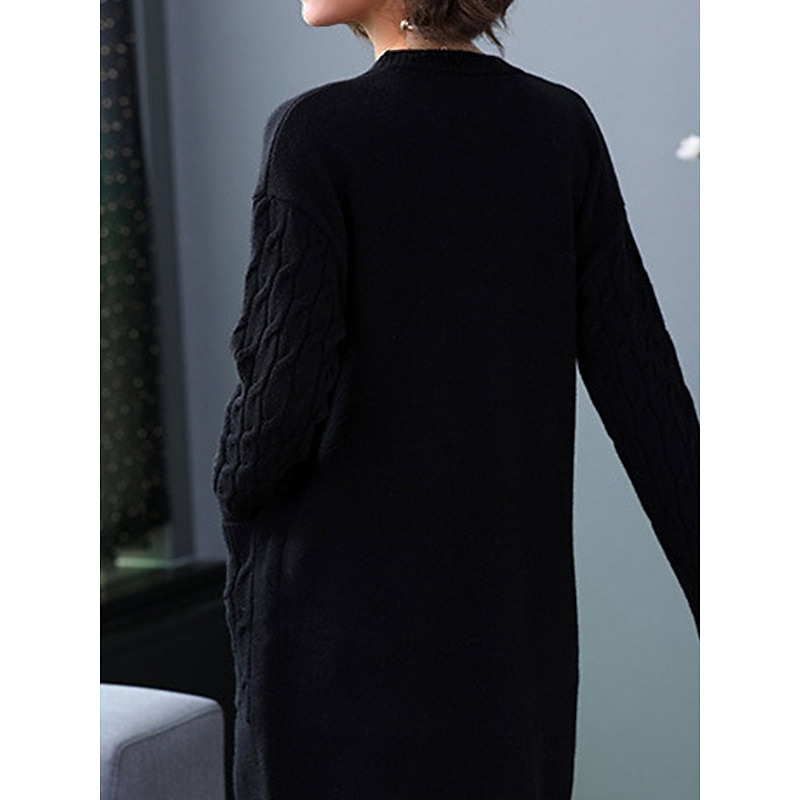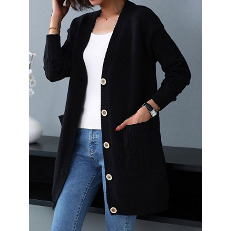 More information about Women's Cardigan Sweater Stylish Casual Soft Solid Color Cable V Neck Buttons Pocket Long Sleeve Long Tops Knit Outdoor Daily Going out Black Red Fall Winter