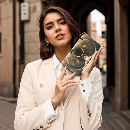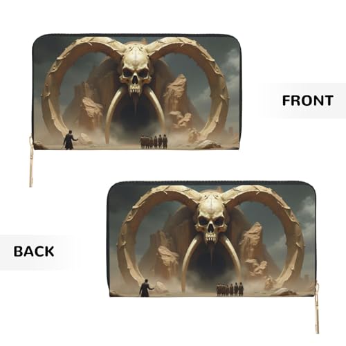 HOT ! Wallet Women - Gothic Beige Skull Cave Print Leather Wallet for Women with Zipper, Cute Bifold Long Ladies Wallets