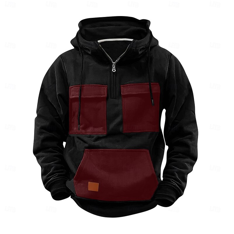 More information about Men's Hoodie Quarter Zip Hoodie Tactical Hoodie Red Blue Purple Green Khaki Hooded Plain Zipper Color Block Sports & Outdoor Casual Daily Streetwear Cool Sportswear Spring & Fall Clothing Apparel