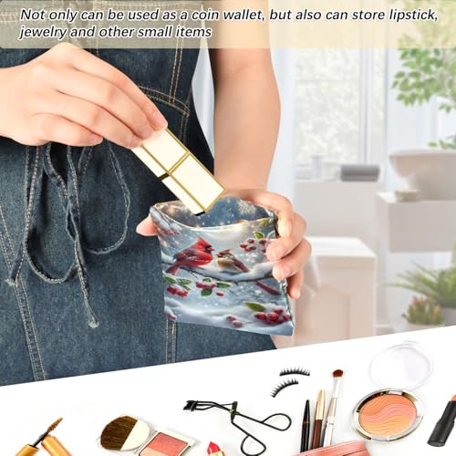 Winter Christmas Birds Coin Purse Leather Pouch Change Purse, Squeeze Coin Pouch for Cards, Keys & Lipsticks, Unisex 5