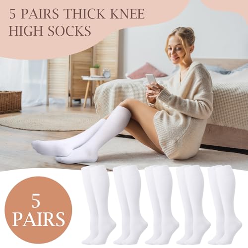 HOT ! Chuarry 5 Pairs Women Knee High Socks Cotton Long Warm Socks Soft Casual Solid Color Thick High Boot Socks for Women Girls Oktoberfest Outfit, White