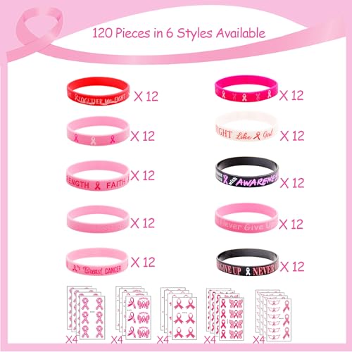 HOT ! 120 Pcs Breast Cancer Bracelets with 20 Pcs Stickers, Pink Ribbon Breast Cancer Awareness Accessories Bracelet, Pink Ribbon Hope Faith Strength Courage Accessories Wristbands for Women