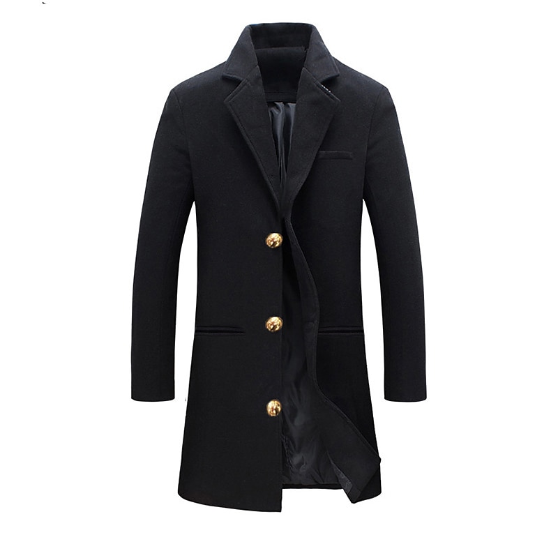 More information about Men's Winter Coat Overcoat Trench Coat Short Coat Overcoat Work Business Winter Polyester Warm Outerwear Clothing Apparel Solid Colored Classic Style Notch lapel collar