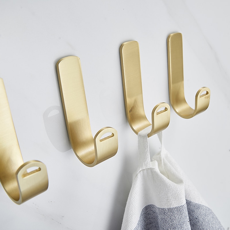5PCS Robe Hook Brass Self Adhesive Brushed Golden Wall Mounted Hook For Bathroom/Kitchen 7