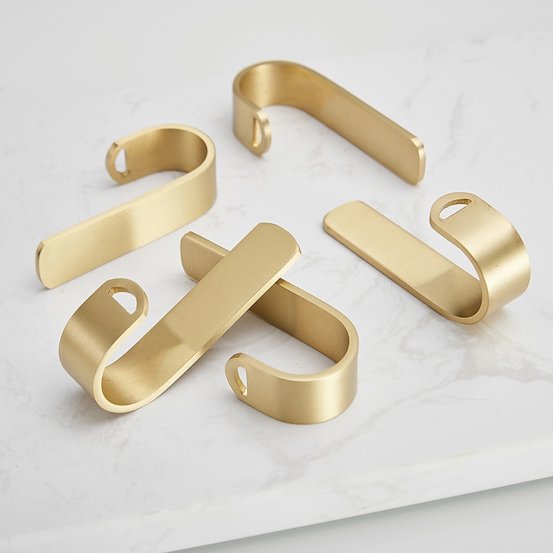 5PCS Robe Hook Brass Self Adhesive Brushed Golden Wall Mounted Hook For Bathroom/Kitchen 8