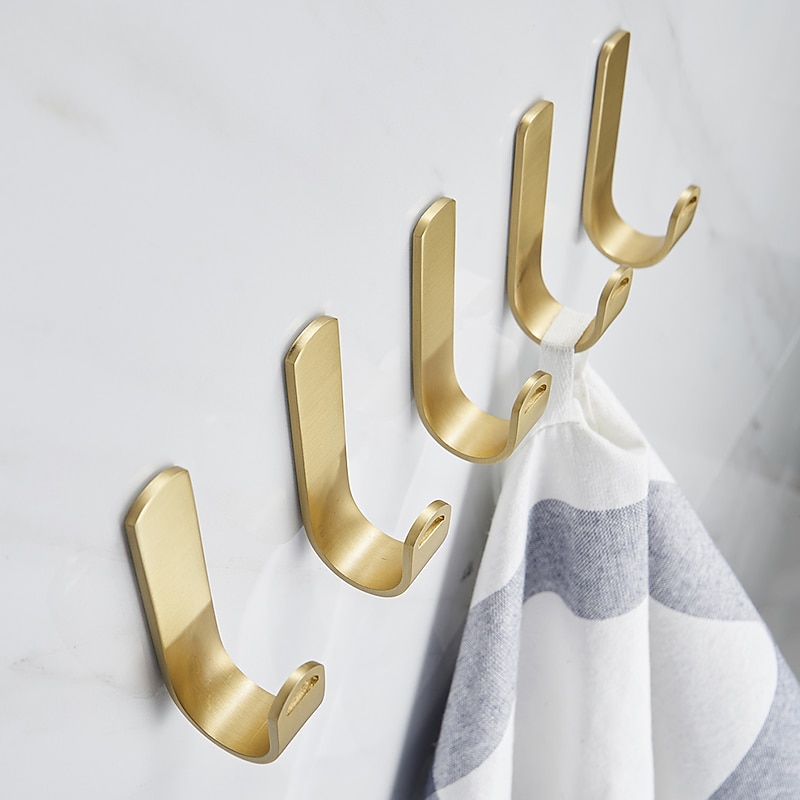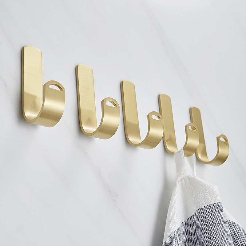 5PCS Robe Hook Brass Self Adhesive Brushed Golden Wall Mounted Hook For Bathroom/Kitchen 1