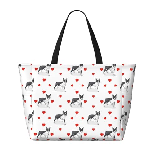 HOT ! Boston Terrier Dog Hearts Cute Large Beach Bag Waterproof Sandproof Swim Tote Pool Bag For Women With Zipper