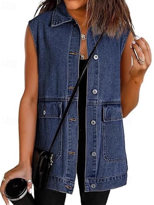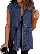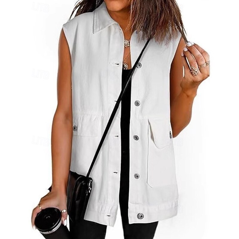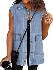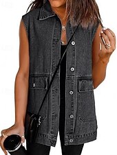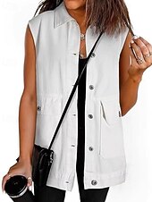 $31.99 - Women's Vest Comfortable Pocket Buttons Casual Plain Street Weekend Single Breasted Regular Turndown Regular Fit Sleeveless Outerwear Light Blue Black Grey White Fall 2025. Shop for cheap Vest online? Buy at lightinthebox.com on sale today!