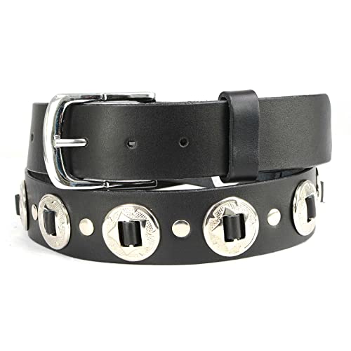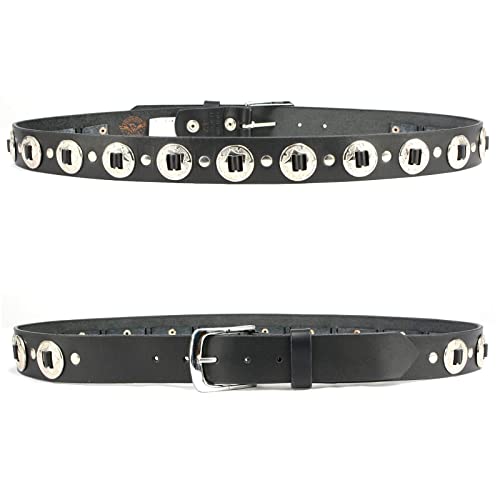 Milwaukee Leather MP7120 Men's Chrome Conchos - Black Leather Belt with Interchangeable Buckle - 1.5 inches Wide 1