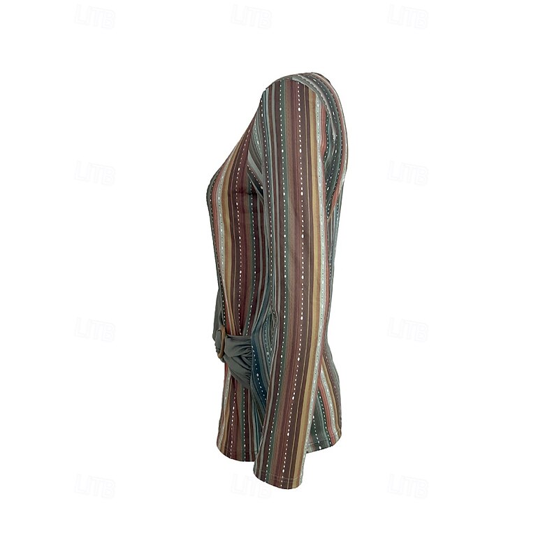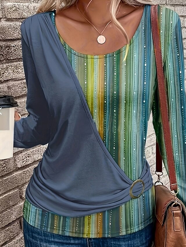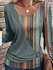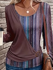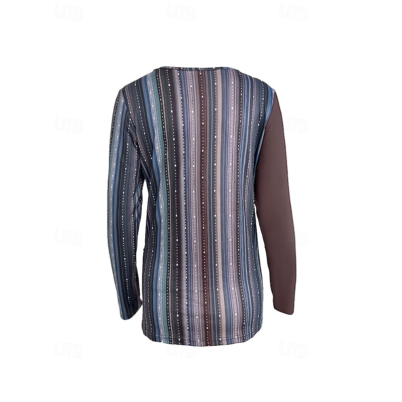 More information about Women's T Shirt Floral Casual Long Sleeve Crew Neck Regular Tops Daily Weekend Patchwork Print Blue Brown Green Fall