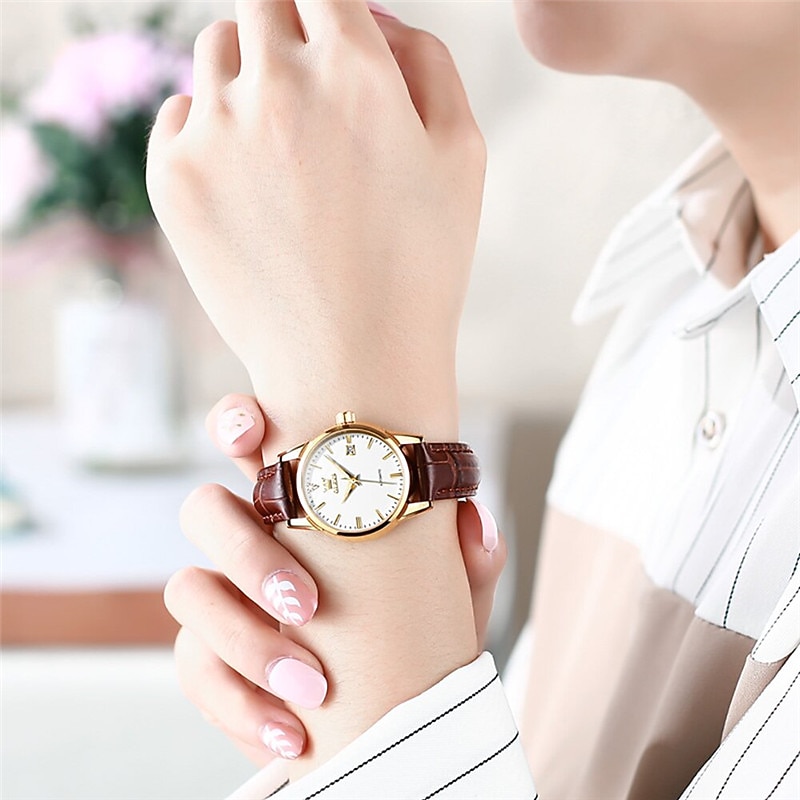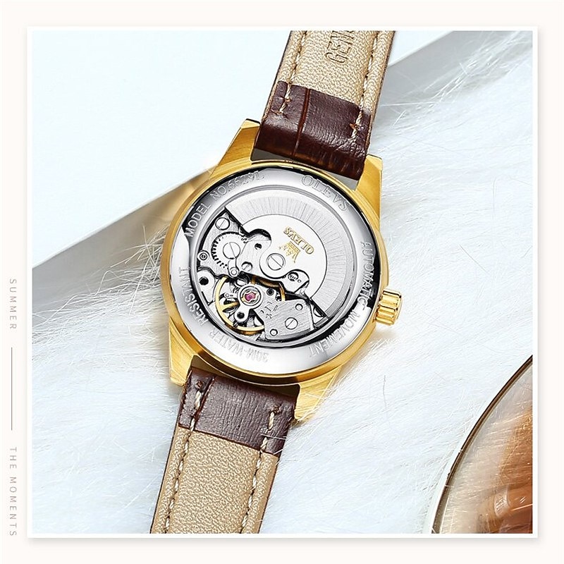 OLEVS Women Mechanical Watch Calendar Waterproof Noctilucent Genuine Leather Watch 10