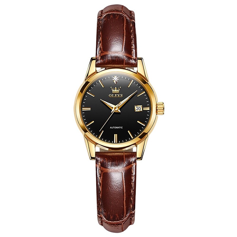 OLEVS Women Mechanical Watch Calendar Waterproof Noctilucent Genuine Leather Watch 1