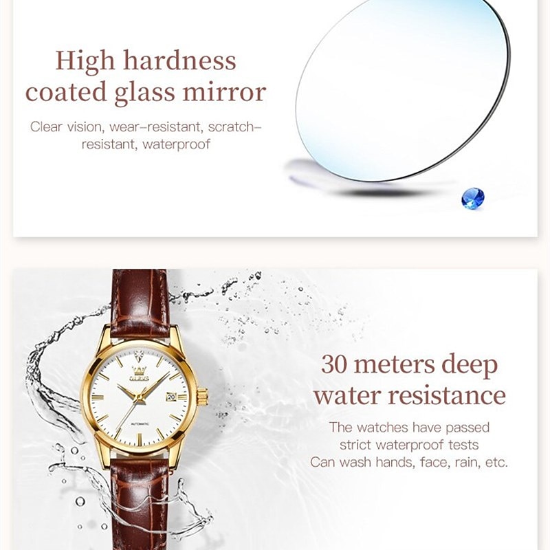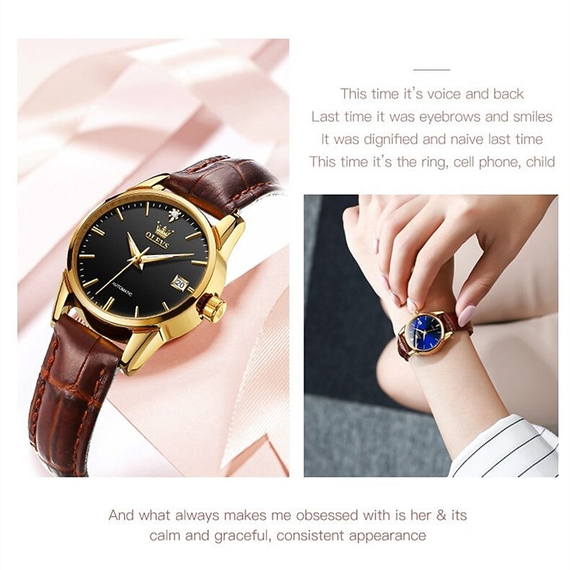 More information about OLEVS Women Mechanical Watch Calendar Waterproof Noctilucent Genuine Leather Watch