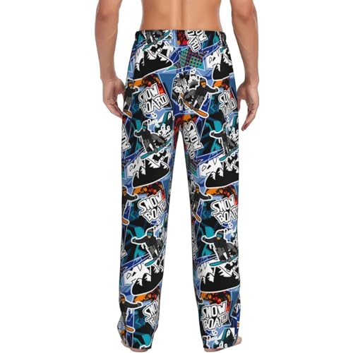 Colorful Snow Board Print Adult Sleep Lounge Pajama Pants,Super Soft Men Pajama Bottoms With Pockets Drawstring 3