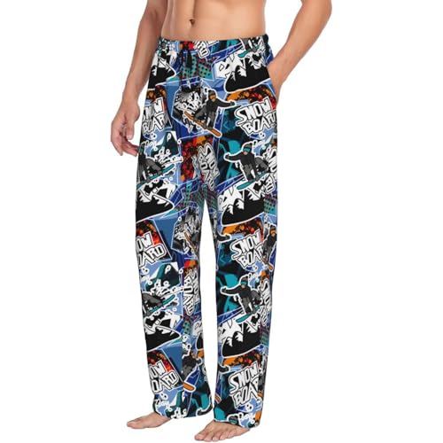 Colorful Snow Board Print Adult Sleep Lounge Pajama Pants,Super Soft Men Pajama Bottoms With Pockets Drawstring 6