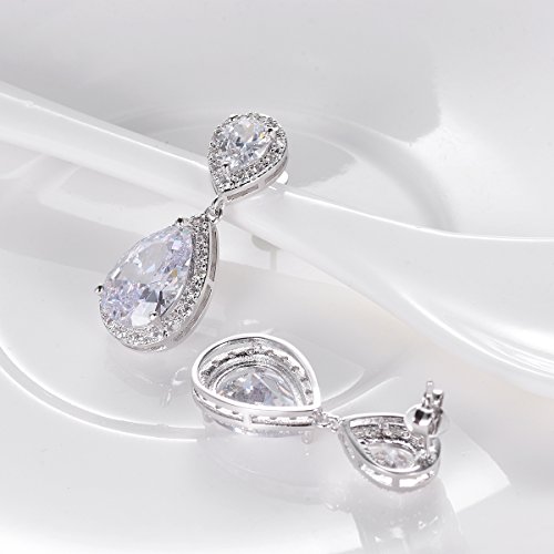 SELOVO Bridal Teardrop Drop Earrings Pierced/Clip Earrings Cubic Zirconia Silver Tone 1