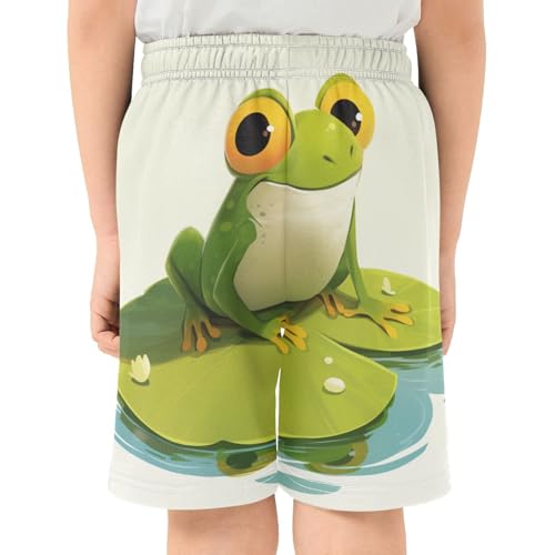 Boys Casual Shorts, Athletic Gym Shorts Elastic Waist with Pockets Frog Big Round Eye Summer Sports Homewear 7-15Y 2