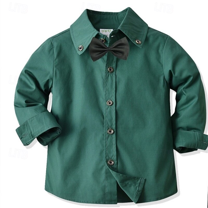 Kids Boys Shirts Solid Color Long Sleeve Patchwork Outdoor Fashion Light Green Spring &  Fall Clothes 3-7 Years 6
