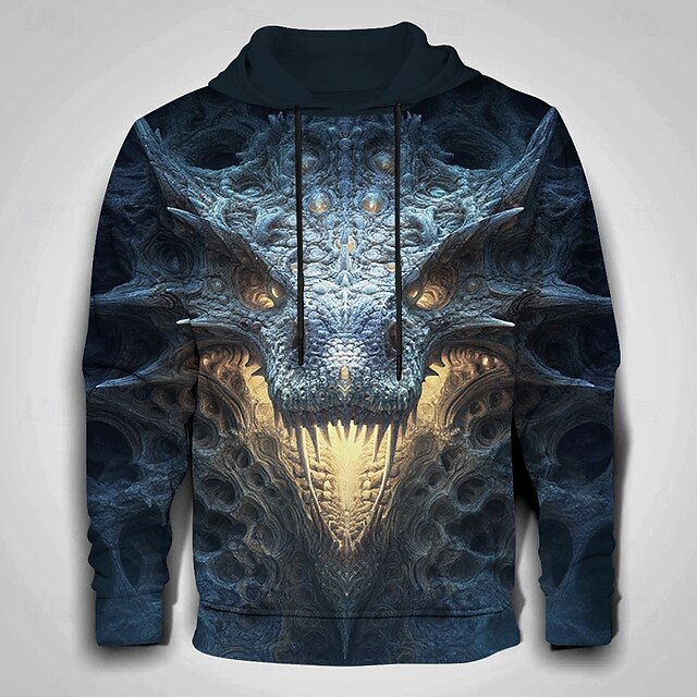 Men's Dragon 3D Hoodies Sweatshirt Cool Party Long Sleeve Crew Neck Club Streetwear Black Blue Drawstring Fall Winter Designer 3