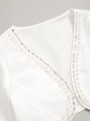 Kids Girls Pearls Sequins Open Front Cardigan Bolero Shrug Long Sleeve Wedding Flower Girls Dress Cover Up 4