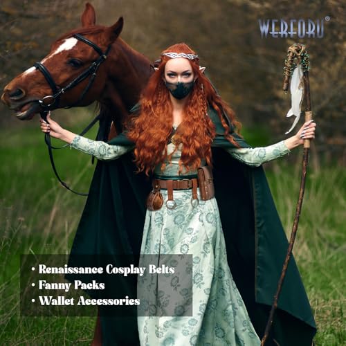 HOT ! WERFORU Medieval Renaissance Leather Pouch Belt for Women - Cosplay Costume Accessory, B-Coffee, Fits Waist Size 28"-43"