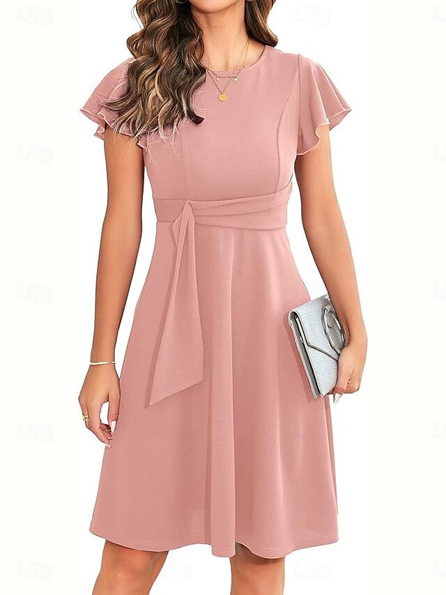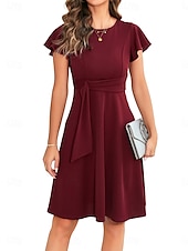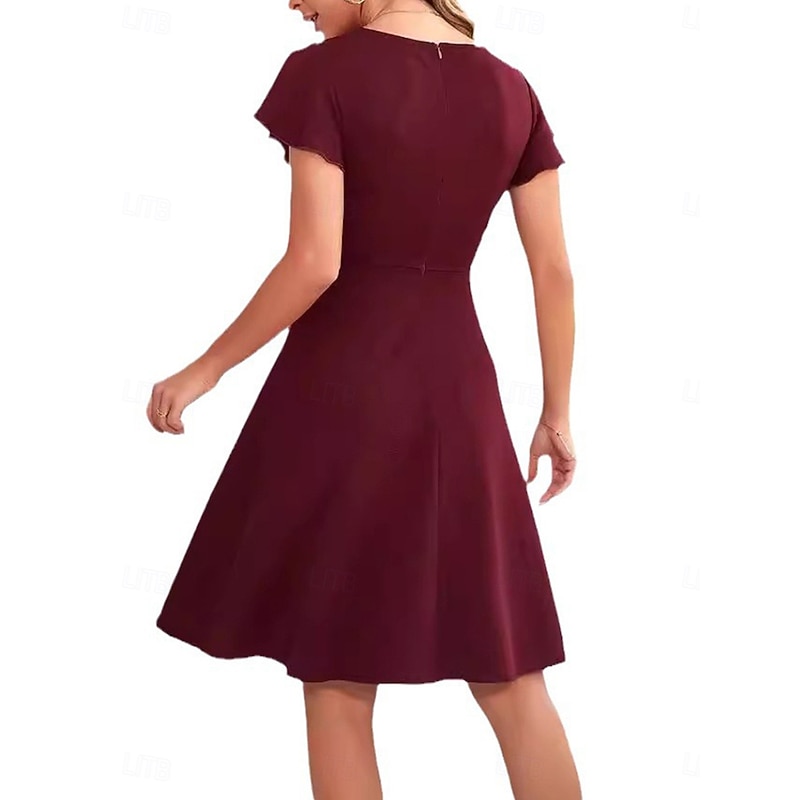 More information about Women's Mini Dress Cocktail Dress Wedding Guest Dress Chiffon Dress Fit And Flare Dress Elegant Party Stylish Regular Fit Plain Short Sleeve Crew Neck Black Pink Wine Summer