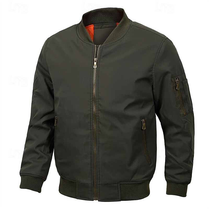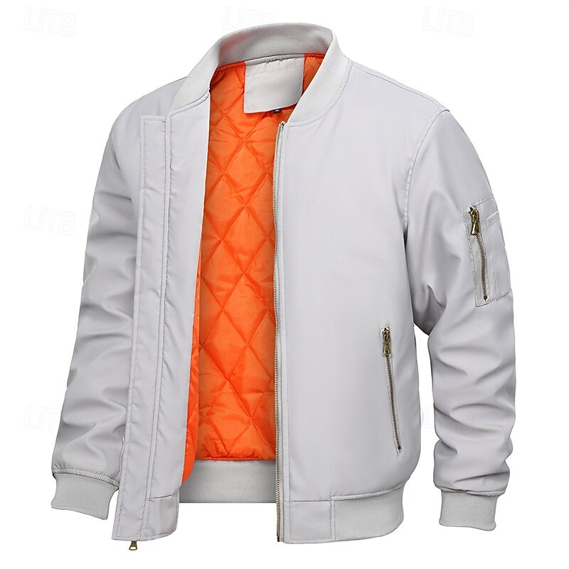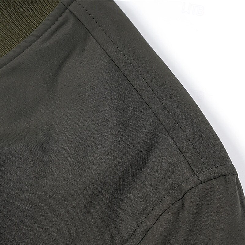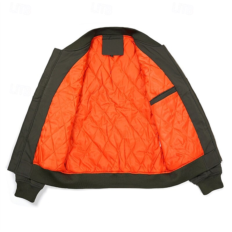 More information about Men's Bomber Jacket Quilted Jacket Casual Jacket Vacation Daily Warm Pocket Fall Winter Plain Fashion Classic Stand Collar Regular Black Army Green Dark Blue Gray Jacket