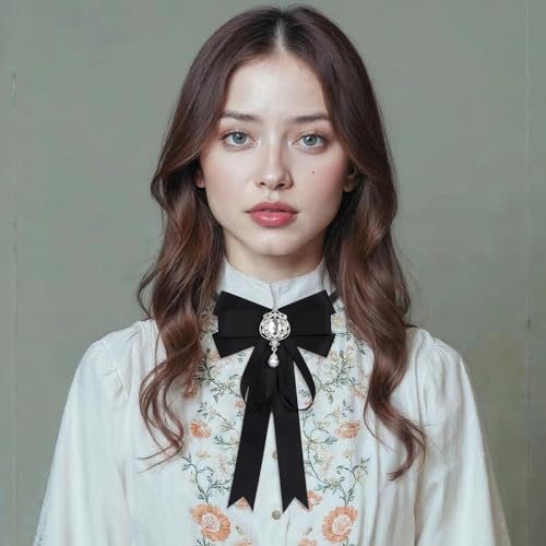 Black Rhinestone Bow Tie for Women, Pre-Tied Ribbon Pearl Shirt Tie Uniform Bow Top for Formal Dress, Tuxedo Dress Suit Wedding 6