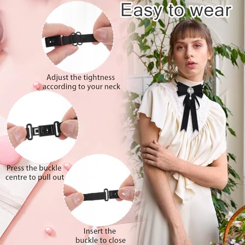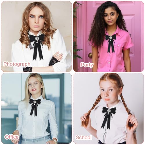 • 【EASY PRE-TIED DESIGN】Ymapinc's black rhinestone bow tie for women is pre-tied, offering a hassle-free, elegant look for ribbon uniform bow tops