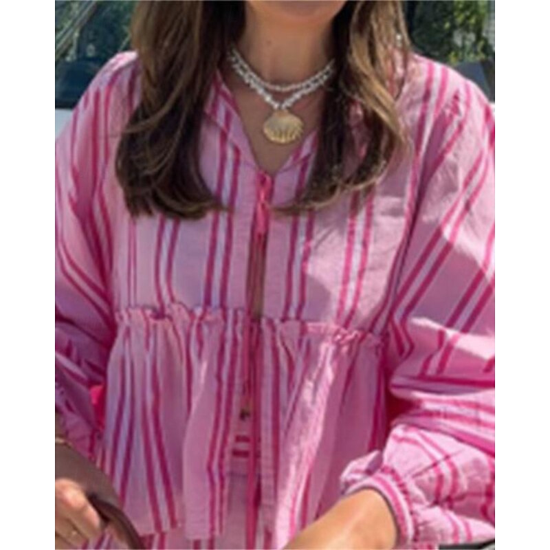 More information about Women's Active Streetwear Cotton Linen Shirts Blouse Shorts Sets Long Sleeve V Neck Striped Ruched Daily Casual Daily Pink Green Summer Regular Fit